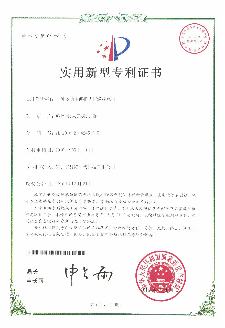 實用新型專利證書-1